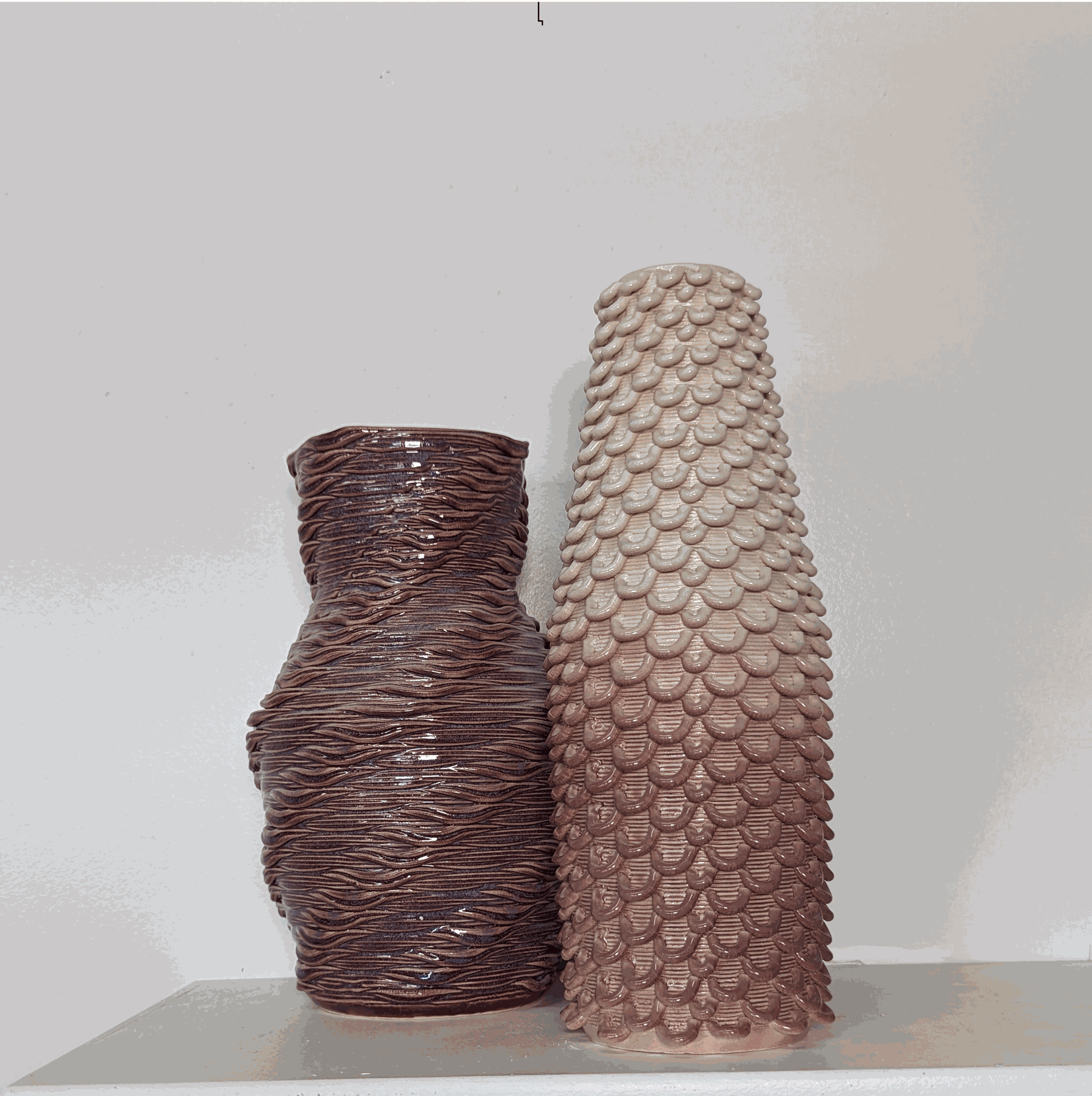 Na het printen van je vaas geef je ze kleur, glans en karakter met glazuur of onderglazuur.